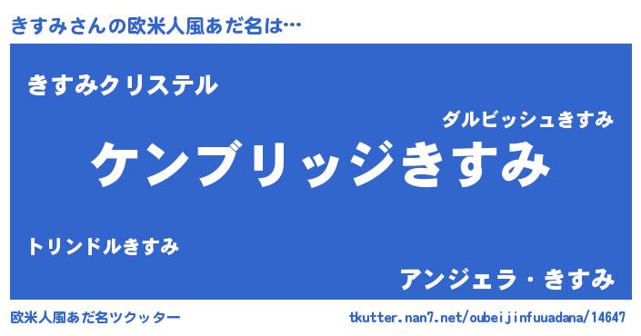 | 男性向けラノベタイトル風あだ名 | 『Re:きすみから始める異世界生活』 |