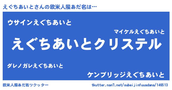 | 男性向けラノベタイトル風あだ名 | 『やはりえぐちあいとの青春ラブコメはまちがっている 』 |