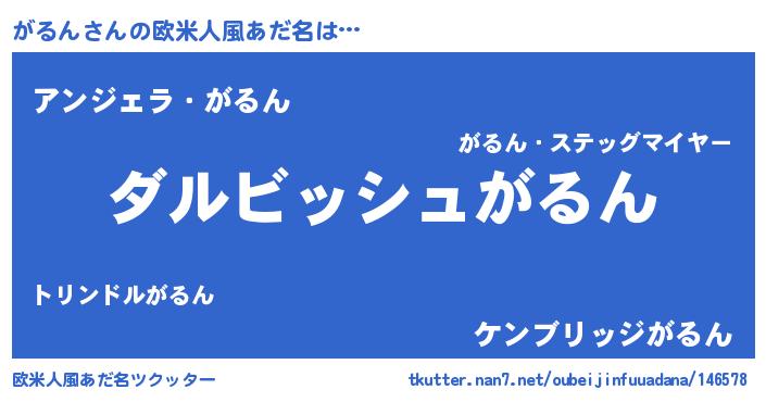 | 女子向けラノベタイトル風あだ名 | 『がるんの契約王妃』『闇のがるん』 |