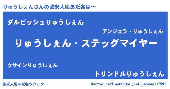 | ヘコむあだ名 | 『りゅうしぇん(苦笑)』『りゅ太郎』 |