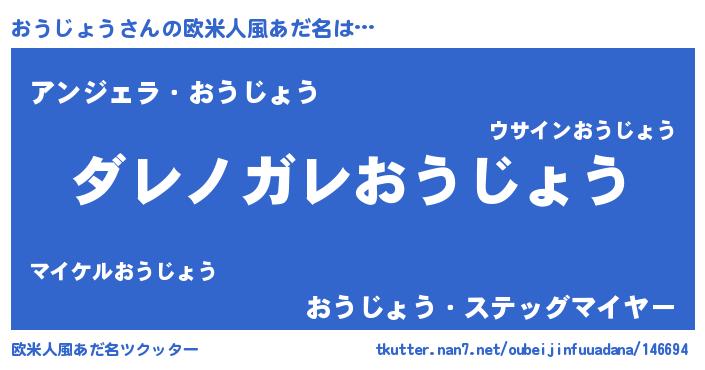 | 男性向けラノベタイトル風あだ名 | 『この素晴らしい世界におうじょうを!』 |
