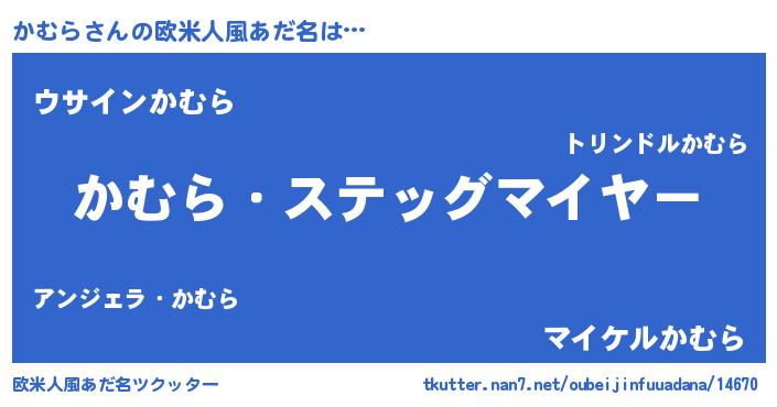 | 男性向けラノベタイトル風あだ名 | 『うちのかむらが世界を掌握している!』 |