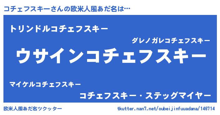 | 男性向けラノベタイトル風あだ名 | 『ダンジョンにコチェフスキーを求めるのは間違っているだろうか』 |