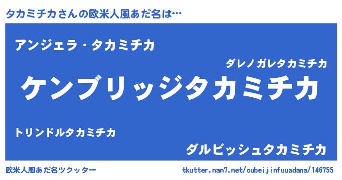 | 男性向けラノベタイトル風あだ名 | 『Re:タカミチカから始める異世界生活』 |