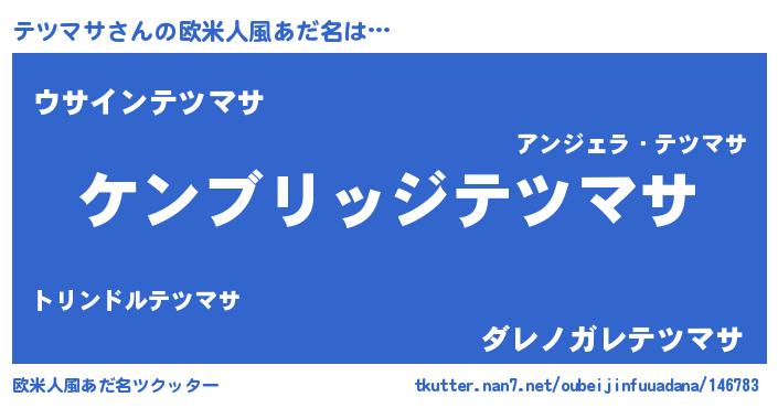 | 男性向けラノベタイトル風あだ名 | 『Re:テツマサから始める異世界生活』 |