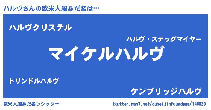 | ファンタジー風あだ名 | 『ハルフェル』『エターナルハルヴー』 |