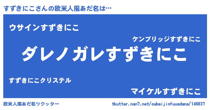 | ポケモン風あだ名 | 『スーズイ』『ヒスズキニコ』 |