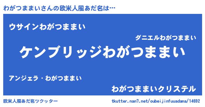 | 意味不明あだ名 | 『自称わがつままい』 |
