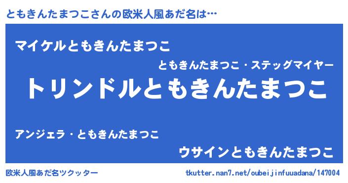 | 男性向けラノベタイトル風あだ名 | 『ともきんたまつこ~年齢イコール彼女いない歴の魔法使い~』 |