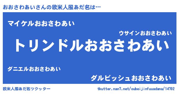 | 男性向けラノベタイトル風あだ名 | 『転生したらおおさわあいだった件』 |