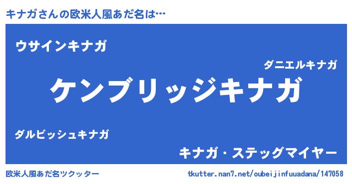 | 女子向けラノベタイトル風あだ名 | 『キナガなんてお断りですっ。』 |