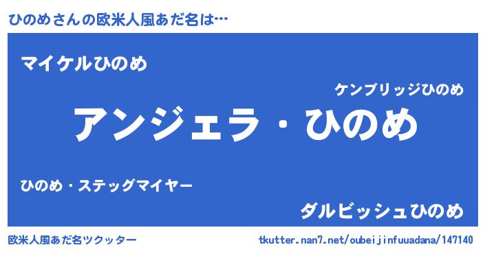 | 男性向けラノベタイトル風あだ名 | 『ひのめに滅ぼされるだけの簡単なお仕事です』 |