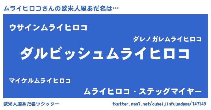 | 男性向けラノベタイトル風あだ名 | 『誰もが恐れるあのムライヒロコが、ぼくの専属メイドになるようです。』 |