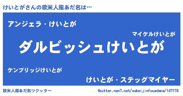 | 胡散臭い通販商品みたいなあだ名 | 『絶対に幸福をもたらす水素水…その名も「けいとが」』 |