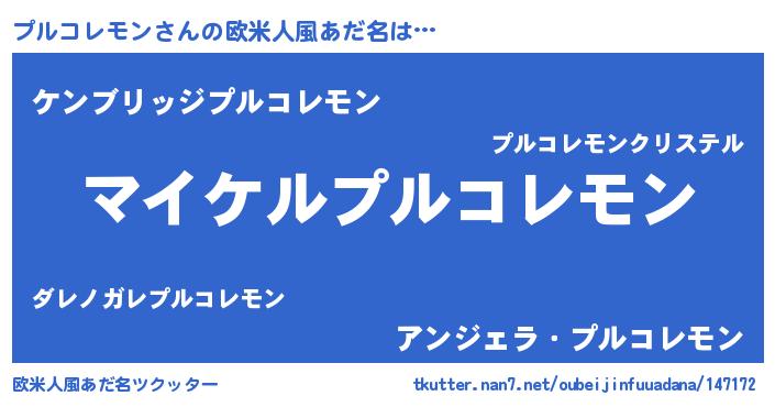 | 男性向けラノベタイトル風あだ名 | 『プルコレモンの憂鬱』 |