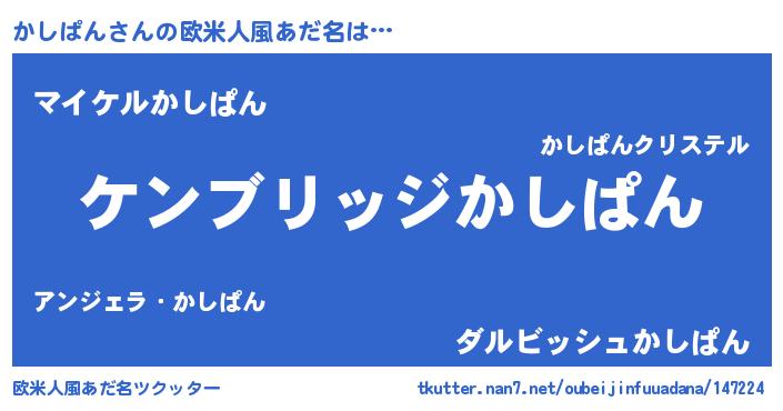 | 男性向けラノベタイトル風あだ名 | 『Re:かしぱんから始める異世界生活』 |