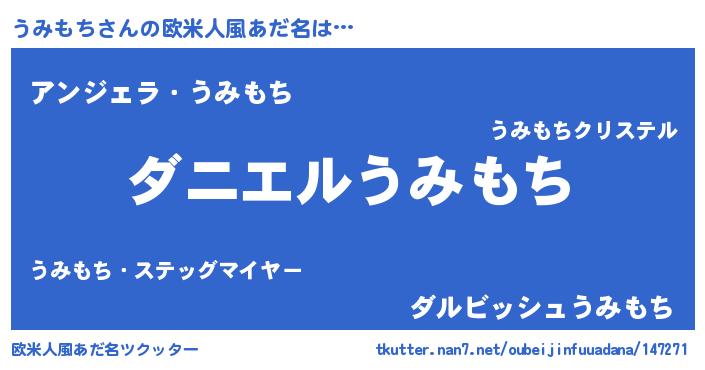 | ヘコむあだ名 | 『うみもち(爆)』『豆乳』『うみお』 |