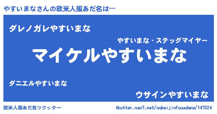 | 男性向けラノベタイトル風あだ名 | 『ヤスイマナアートオンライン』 |
