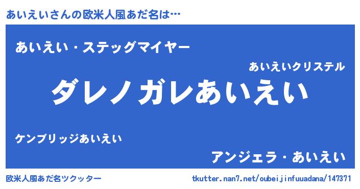 | 男性向けラノベタイトル風あだ名 | 『この素晴らしい世界にあいえいを!』 |