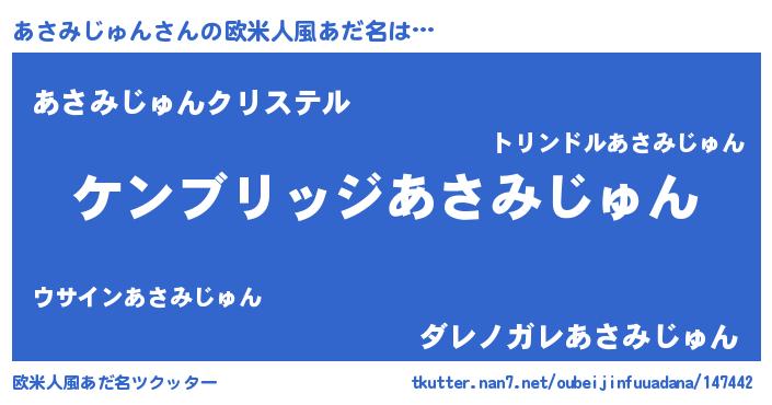 | 男性向けラノベタイトル風あだ名 | 『Re:あさみじゅんから始める異世界生活』 |