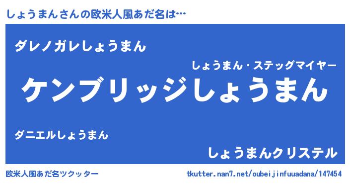 | 男性向けラノベタイトル風あだ名 | 『Re:しょうまんから始める異世界生活』 |
