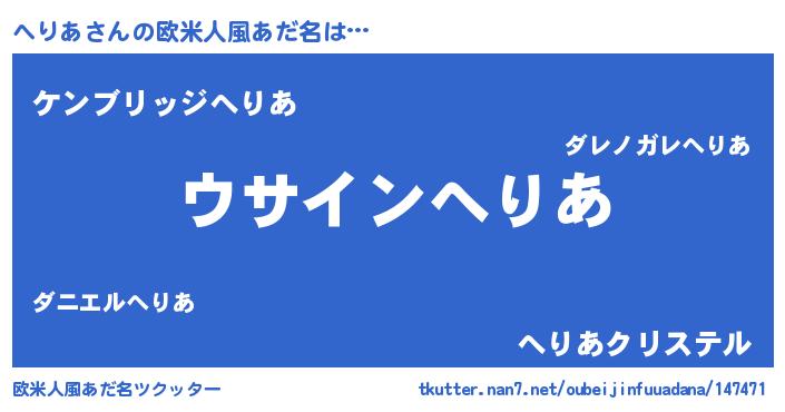 | 意味不明あだ名 | 『とにかく怪しいへりあ』『自称へりあ』 |