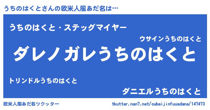 | 意味不明あだ名 | 『住所不定無職うちのはくと(50歳)』 |