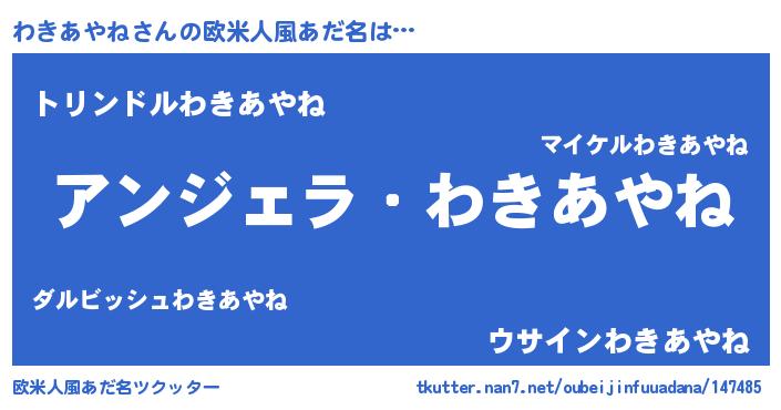 | 男性向けラノベタイトル風あだ名 | 『わきあやねに滅ぼされるだけの簡単なお仕事です』 |