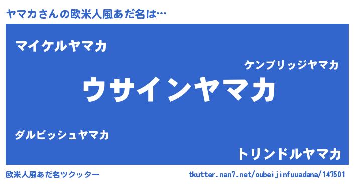 | 男性向けラノベタイトル風あだ名 | 『ヤマカの嫁は女の子じゃないと思った?』 |