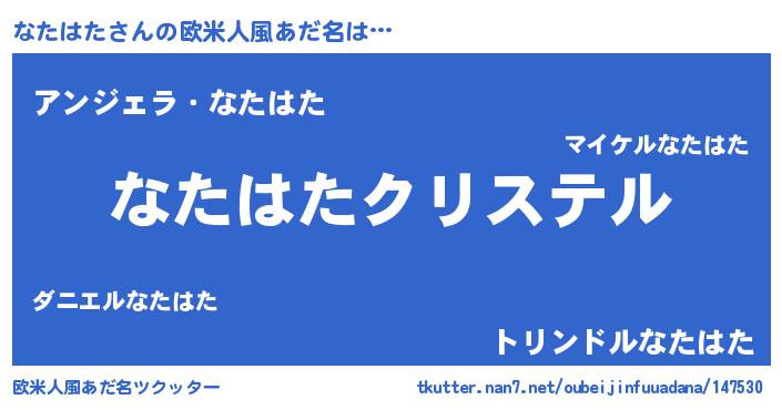 | 男性向けラノベタイトル風あだ名 | 『やはりなたはたの青春ラブコメはまちがっている 』 |