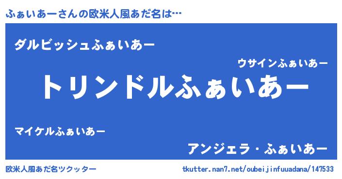 | 胡散臭い通販商品みたいなあだ名 | 『絶対に幸福をもたらす水素水…その名も「ふぁいあー」』 |