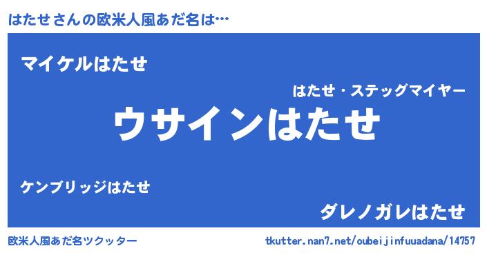 | 男性向けラノベタイトル風あだ名 | 『はたせの嫁は女の子じゃないと思った?』 |