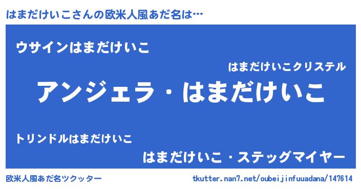 | 男性向けラノベタイトル風あだ名 | 『はたらくはまだけいこさま!』 |