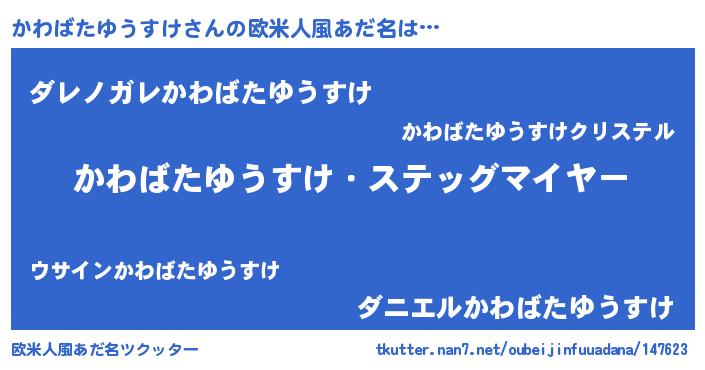 | 意味不明あだ名 | 『住所不定無職かわばたゆうすけ(95歳)』 |