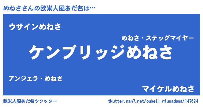 | 意味不明あだ名 | 『自称めねさ』『とにかく怪しいめねさ』 |
