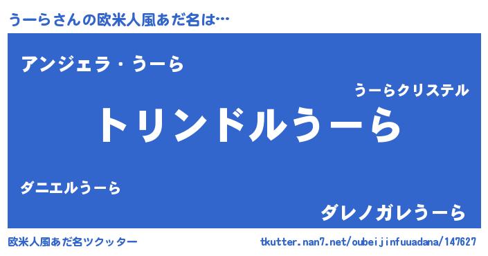 | 男性向けラノベタイトル風あだ名 | 『転生したらうーらだった件』 |
