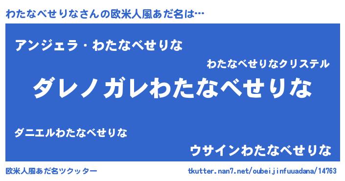| 女子向けラノベタイトル風あだ名 | 『悪役わたなべせりなに転生したようですが、知った事ではありません』 |