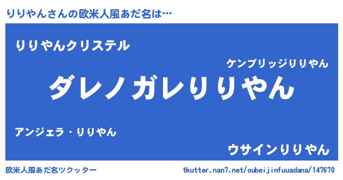 | 女子向けラノベタイトル風あだ名 | 『乙女ゲームの破滅フラグしかない悪役りりやんに転生してしまった…』 |