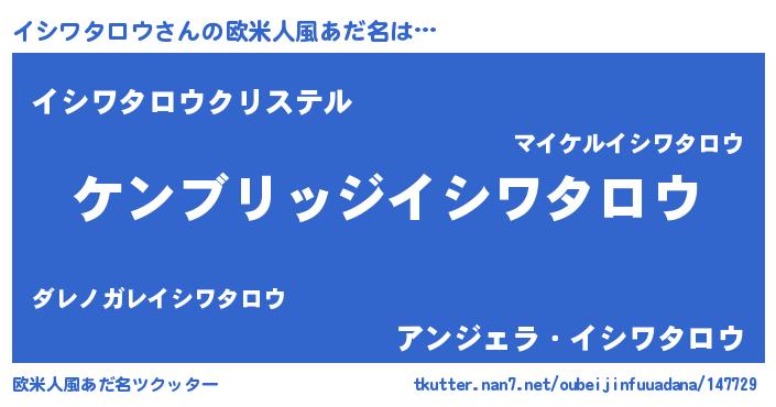 | 女子向けラノベタイトル風あだ名 | 『イシワタロウなんてお断りですっ。』 |