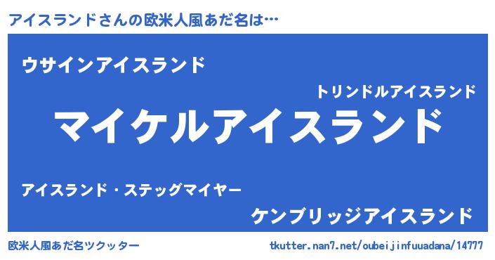 | 男性向けラノベタイトル風あだ名 | 『アイスランドアートオンライン』 |