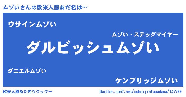 | 意味不明あだ名 | 『永久保存ムゾい』『自称ムゾい』 |
