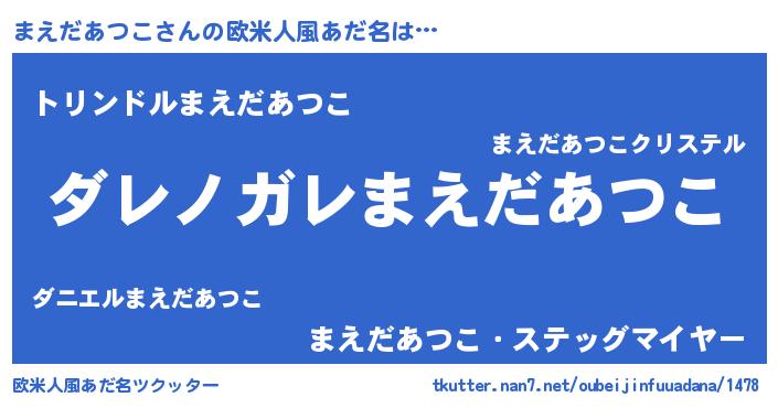 | 男性向けラノベタイトル風あだ名 | 『この素晴らしい世界にまえだあつこを!』 |
