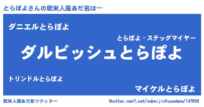 | 意味不明あだ名 | 『永久保存とらぽよ』『ペロリンとらぽよ』 |