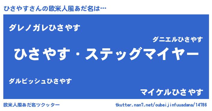 | 男性向けラノベタイトル風あだ名 | 『うちのひさやすが世界を掌握している!』 |