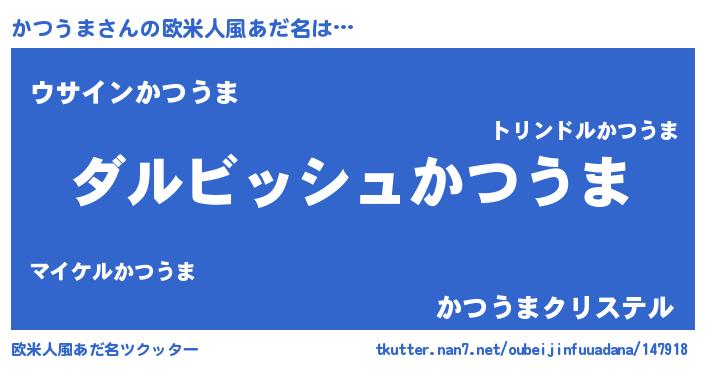 | 男性向けラノベタイトル風あだ名 | 『かつうまという概念が存在しない退屈な世界 』 |