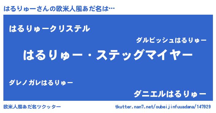 | 男性向けラノベタイトル風あだ名 | 『うちのはるりゅーが世界を掌握している!』 |