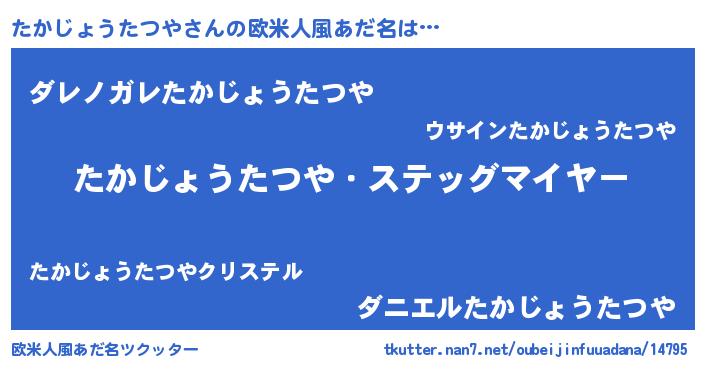 | 男性向けラノベタイトル風あだ名 | 『緋弾のタカジョウタツヤ』 |
