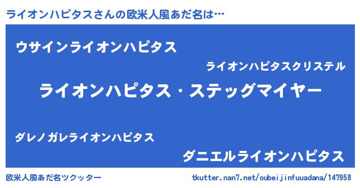 | 男性向けラノベタイトル風あだ名 | 『緋弾のライオンハピタス』 |