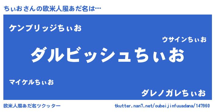 | 男性向けラノベタイトル風あだ名 | 『ちぃおという概念が存在しない退屈な世界 』 |