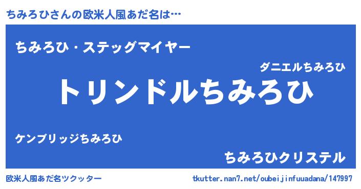 | ヒーロー風カッコイイあだ名 | 『ウルトラちみろひマン』『ネオチミロヒ』 |